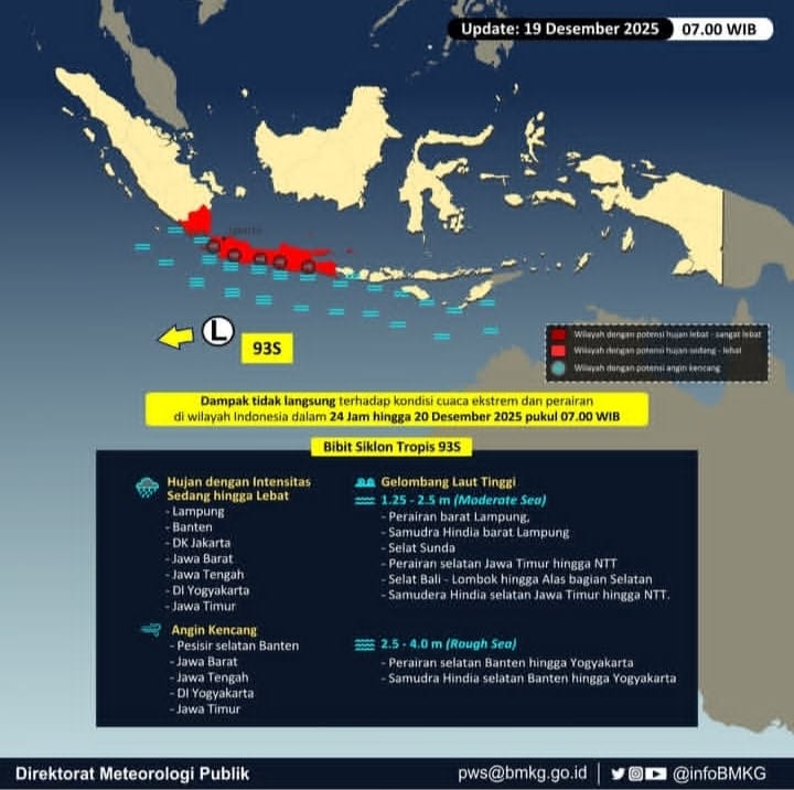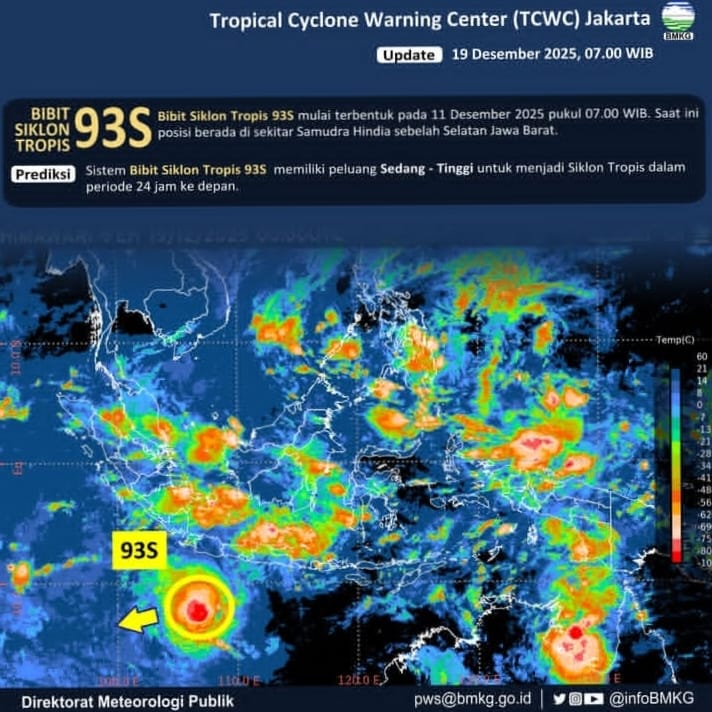 Deputi Bidang Meteorologi BMKG, Guswanto, juga menyampaikan bahwa selain Bakung, BMKG memantau bibit siklon tropis 93S di Samudra Hindia sebelah selatan Bali–Nusa Tenggara. Meskipun peluangnya untuk berkembang menjadi siklon tropis dalam 24–72 jam ke depan rendah, sistem ini tetap berkontribusi terhadap dinamika cuaca ekstrem, termasuk potensi hujan lebat di Jawa Timur, Bali, dan Nusa Tenggara Barat.